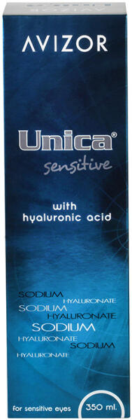 Az Avizor Unica Sensitive folyadék nagyon érzékeny szemű kontaktlencse viselők számára lett kifejlesztve.   Hosszan tartó hidratálás - a lencsék tisztító folyadékban történő áztatása gyors és hatékony módja a kezdeti hidratáltságuk visszaállításának és a maximális kényelem újbóli helyreállításának. Érzékeny szemekre tervezve - az említett tisztító folyadék összetételében minimalizálták a tartósítószereket. Ennek eredményeként a készítményt nagyon jól tolerálják az allergiás reakciókra hajlamos személyek. Biztonságos tárolás - a folyadékkal teli tároló ideális környezet az éppen nem használt lencsék tárolásához. A szennyeződésektől távol megőrzik értékes tulajdonságaikat, készen állva a használatra. Hatékony fertőtlenítés és tisztítás - a folyadék legfontosabb feladata a lencsék alapos megtisztítása a rajtuk lerakódott szennyeződésektől: fehérjék, zsír, por, veszélyes mikroorganizmusok. Ezáltal visszaállítja a lencsék hibátlan tisztaságát és sterilitását. Védelem a mikrosérülésekkel szemben - a folyadék összetételét számos tápláló összetevő gazdagítja, amelyek pozitívan befolyásolják a szem állapotát - támogatják a szaruhártya regenerációját, védelmet nyújtva a mikrosérülésekkel és az iritációval szemben.   A Avizor Unica Sensitive jellemzői:   Nátrium-hialuronátot tartalmaz, egy olyan természetes összetevőt ami megtalálható a szemben is, és minimális mennyiségű tartósítószert. Egy kis mennyiség megakadályozza a szem allergiás reakcióját. Minden típusú kontaktlencse tisztításához alkalmazható, beleértve a modern szilikon-hidrogél lencséket. Az Avizor Unica Sensitive tökéletes tisztításhoz, fertőtlenítéshez, fehérje lerakódások eltávolításához, leöblíti és hidratálja a kontaktlencséket, valamint alkalmazható tároláshoz is. Hidratálja, és megkönnyíti a behelyezést. Ezenkívül csökkenti a száraz szem tüneteit, és megakadályozza mechanikai sérülések által okozott a szempirosságot. Ezzel meghosszabbítja kényelmes lencseviselést, kiválóan védi a szaruhártyát és hidratálja a szemet.   A termék csomagban is elérhető: Avizor Unica Sensitive Duo Pack 2 x 350 ml